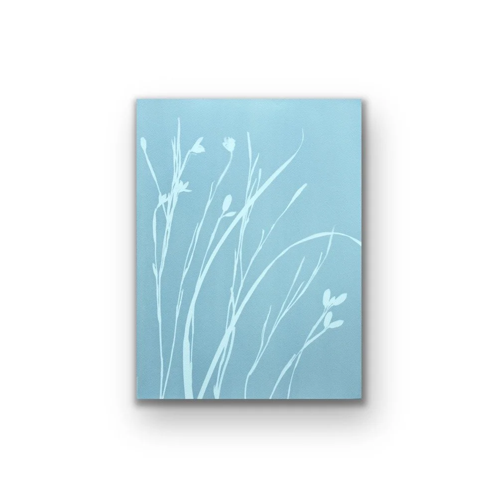 This pale blue-gray is a very difficult color to achieve with the cyanotype antique photographic process. I altered the ratio of the two photography chemicals in the traditional cyanotype photo emulsion to achieve different colors.