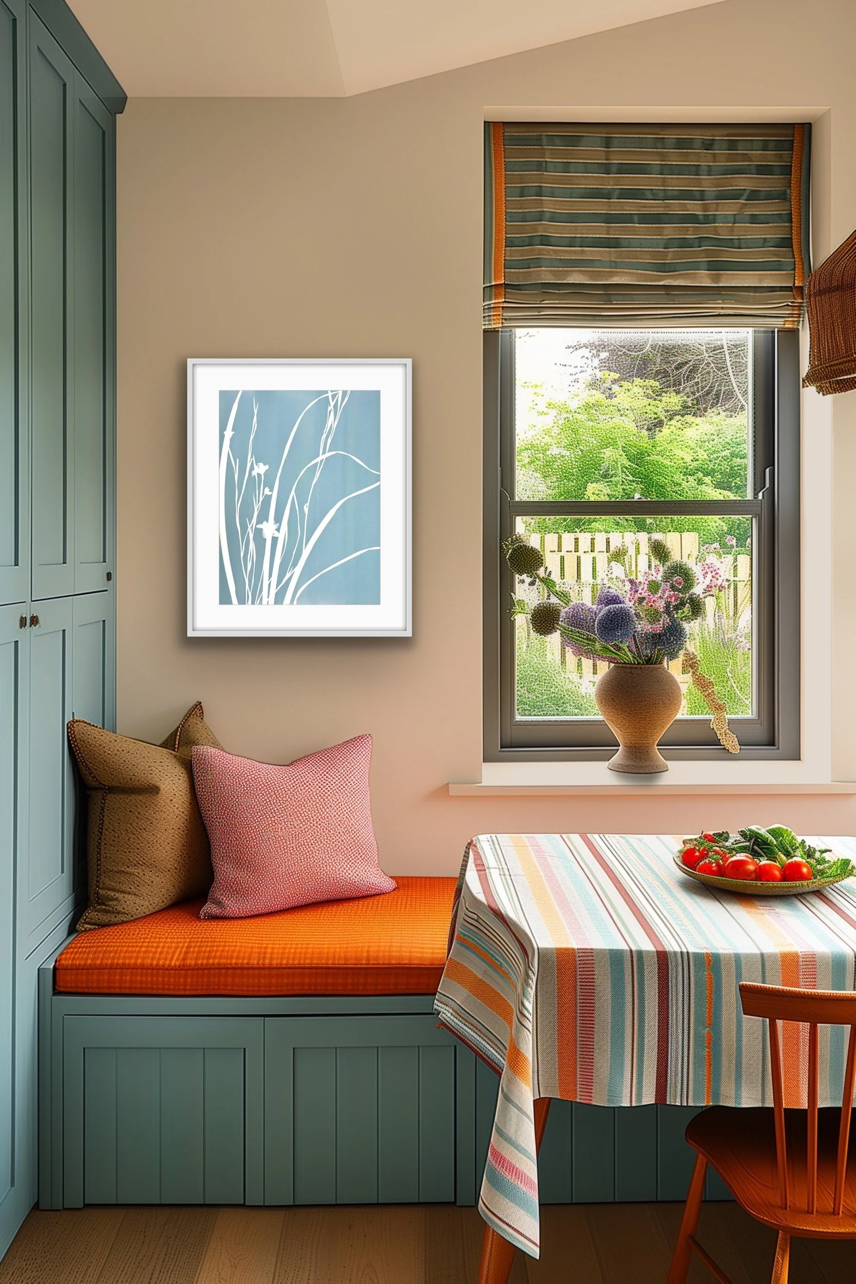 Multiples of this series are shown together in case a person wanted to know how they would look side by side. If matted and framed to 30h x 24w, two would span 4 feet and three would span 6 feet or more (including gaps) horizontally.