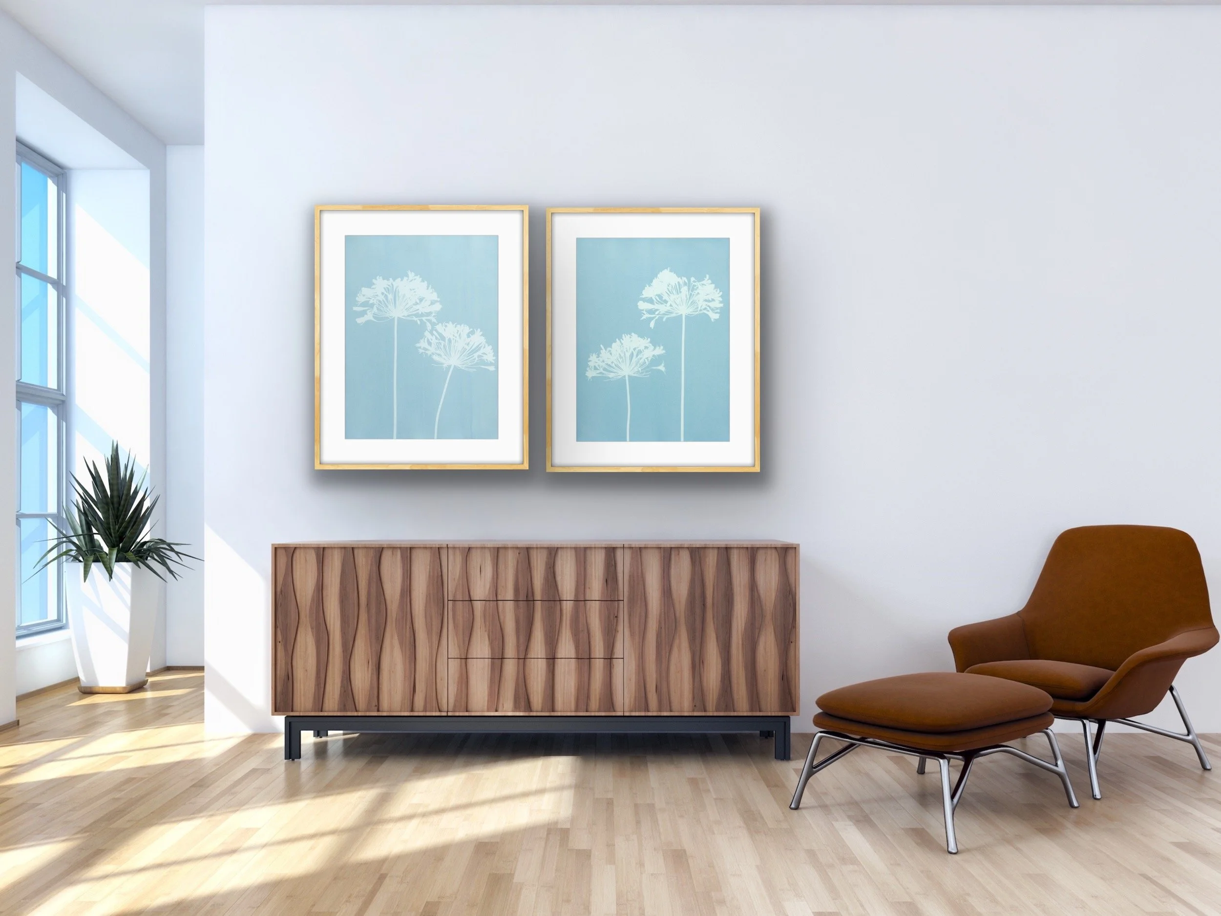 Unframed dimensions 24 × 54” total. If matted and framed to 30 × 24” each, they will span over 6 feet horizontally.