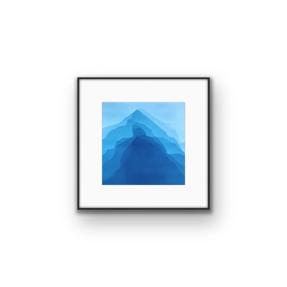 Though these monotypes resemble watercolor paintings or an aquatint etchings, they are actually a form of photography called a cyanotype, photogram or sun print. What you see is a multiple-exposure lensless photograph. Each is entirely unique. These exact lines, shapes and shades of blue cannot be recreated as the exposure of the paper was heavily manipulated by me during each printing.