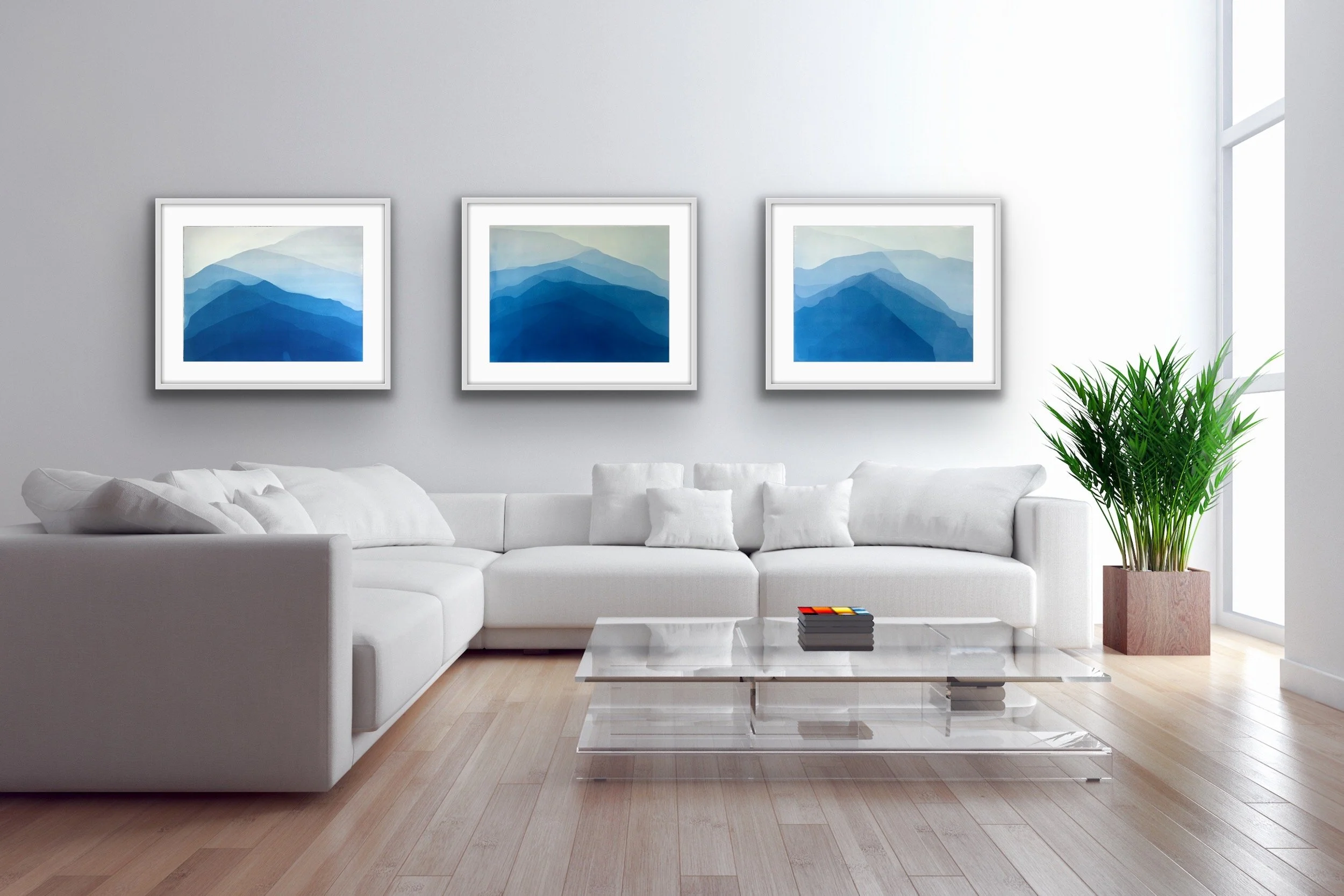 The same size as Blue Hills I and Blue Hills III. Together the three would make a perfect triptych. They would span over 6 feet horizontally if framed in 24 × 24” frames with a 3-inch wide mat.