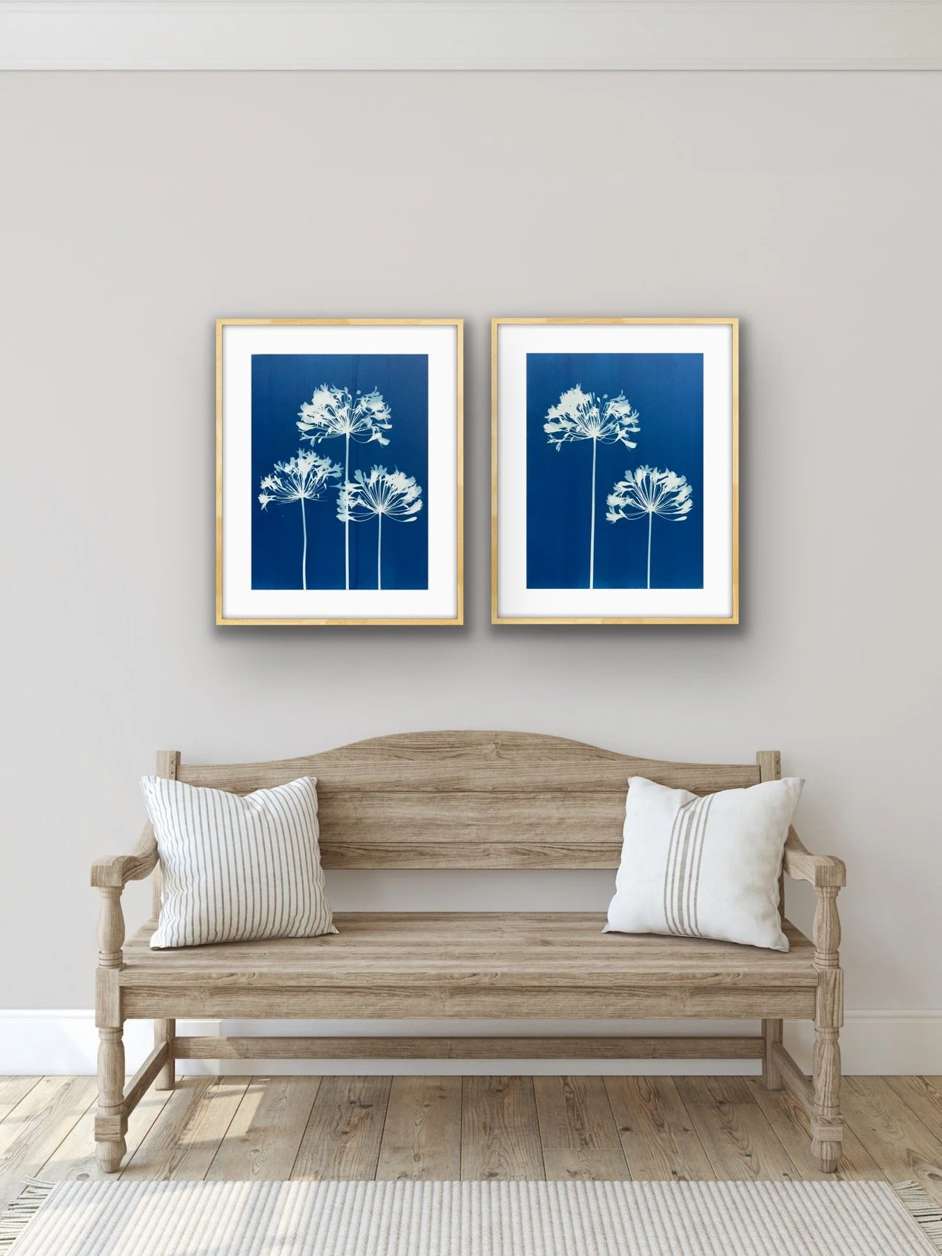Rhododendron Diptych (Two 18 x 12" unframed cyanotype paintings on paper)
