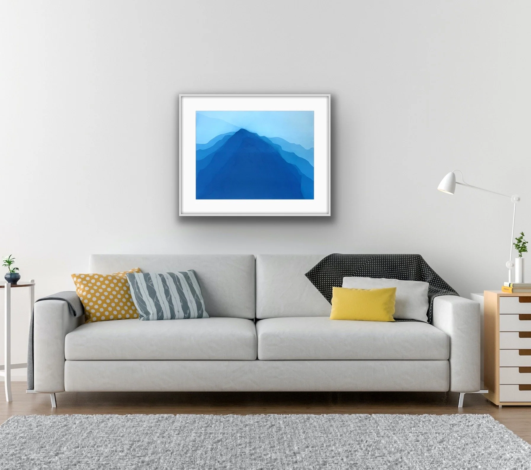 Sea Cliffs 5 (25 h x 15 w inches FRAMED. ONE Original abstract cyanotype on paper)