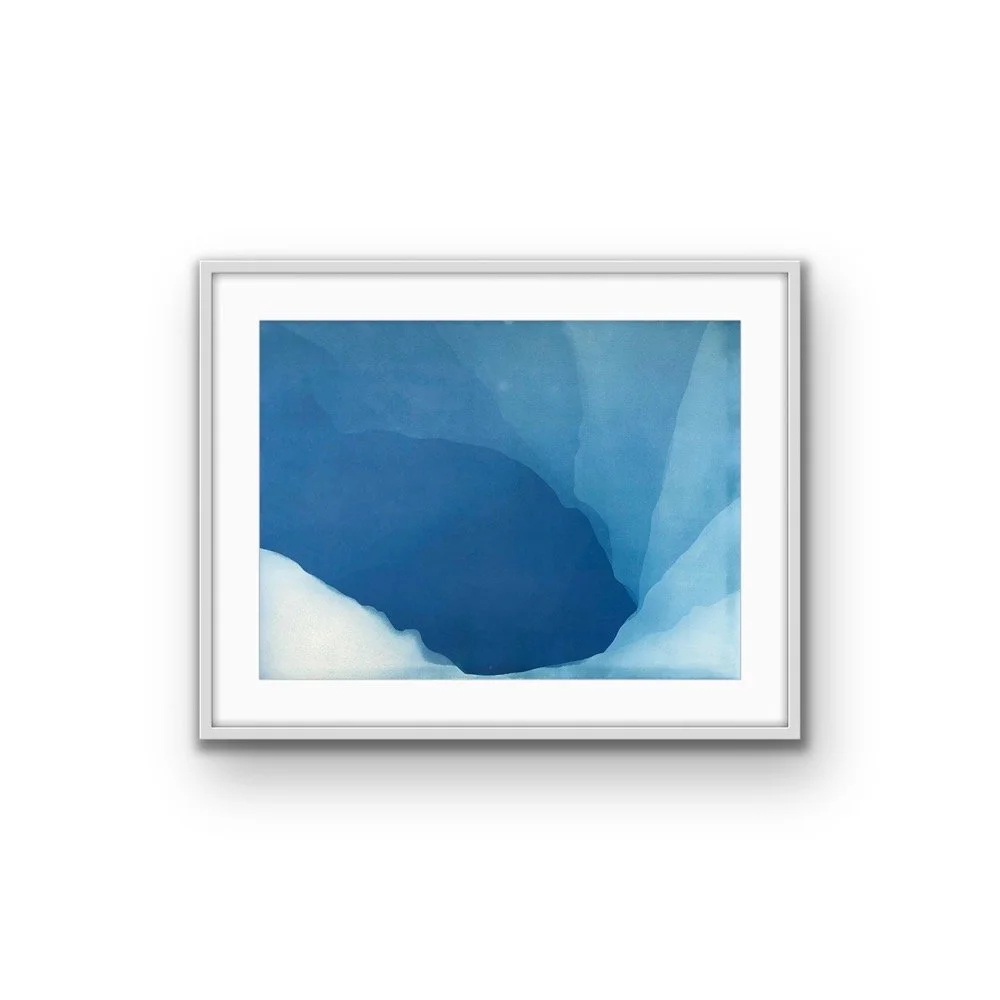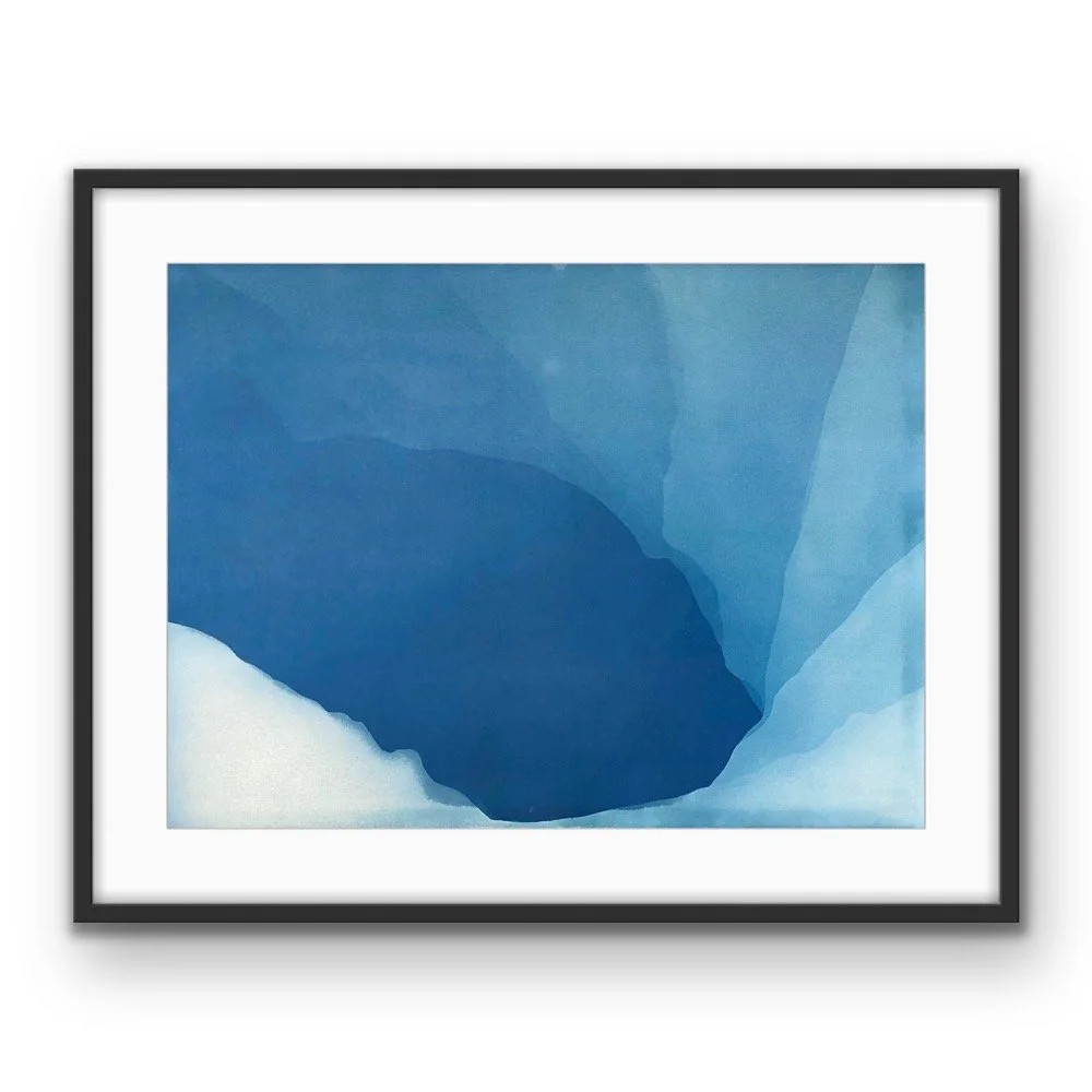 What you see is are multiple-exposure lensless photographs. Each is entirely unique. These exact lines, shapes and shades of blue cannot be recreated as the of the exposure of the paper was heavily manipulated by me during each printing.