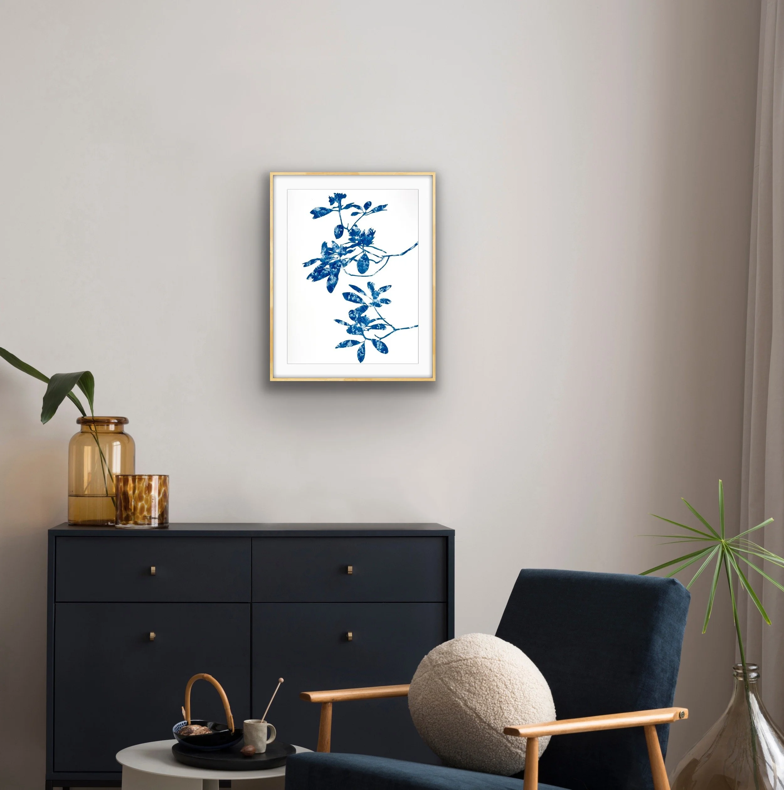 (Framed 24 x 18" Original Cyanotype Painting on Paper)