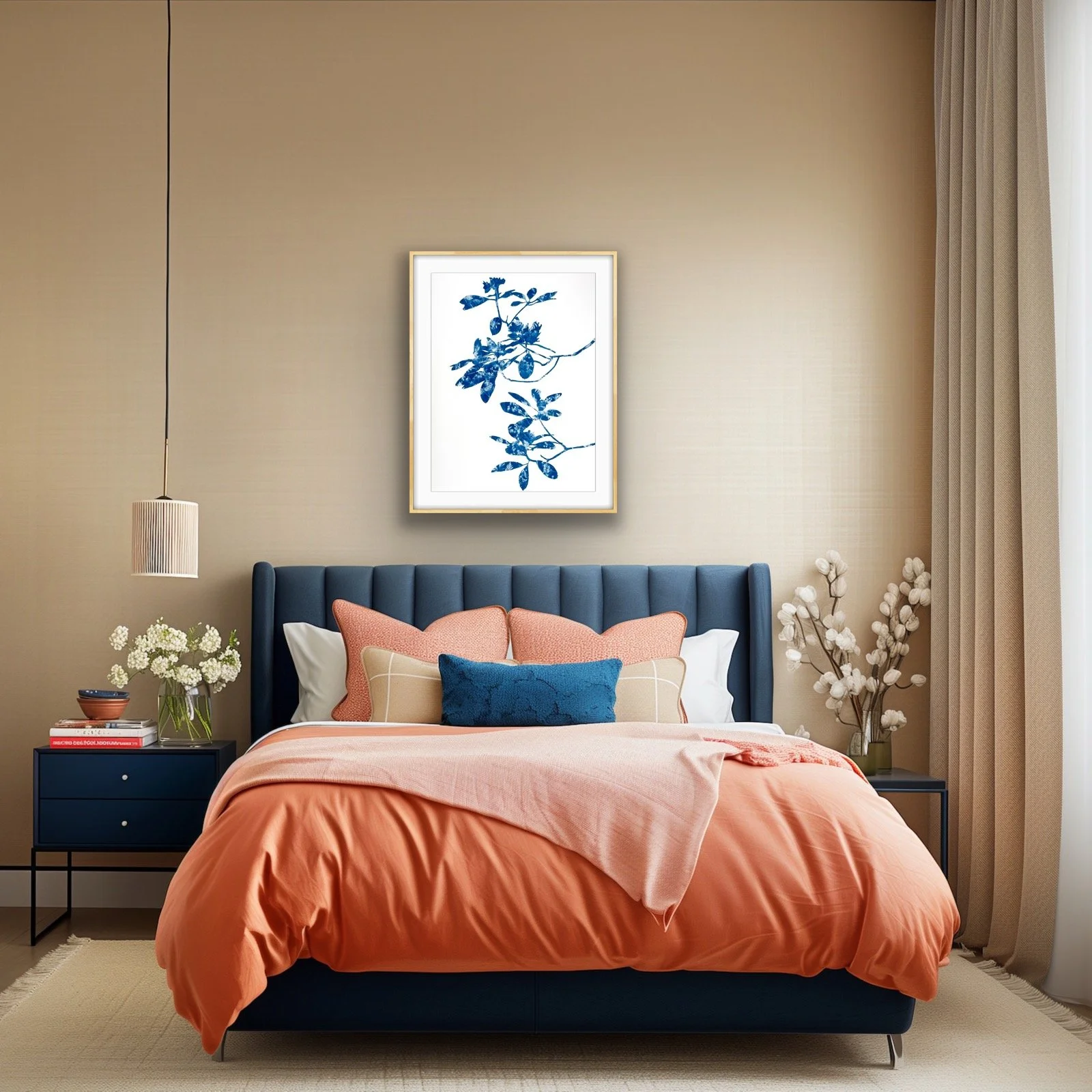 Two Delft Agapanthus ( 24 x 18 in cyanotype painting FRAMED to 30 x 24 in.)